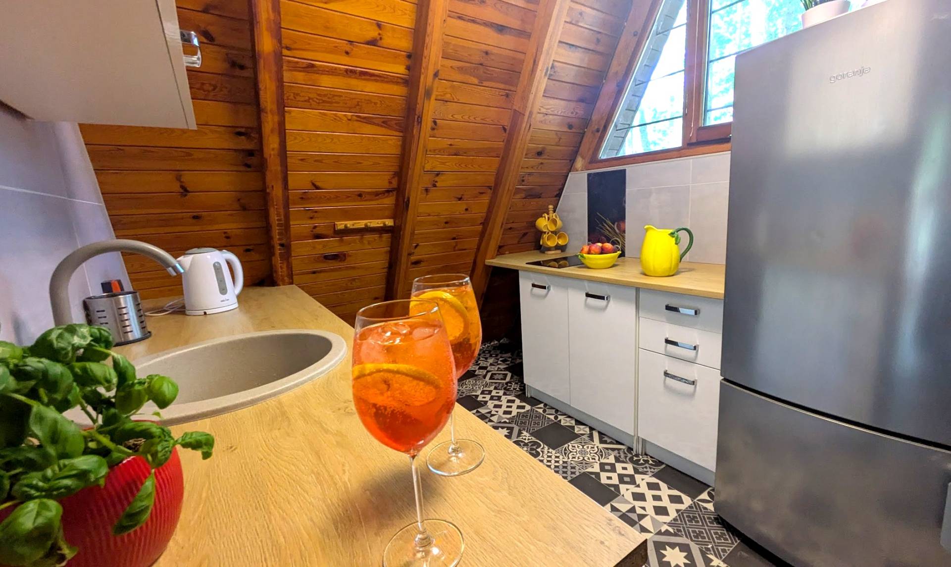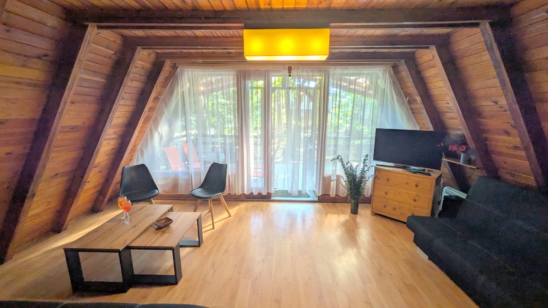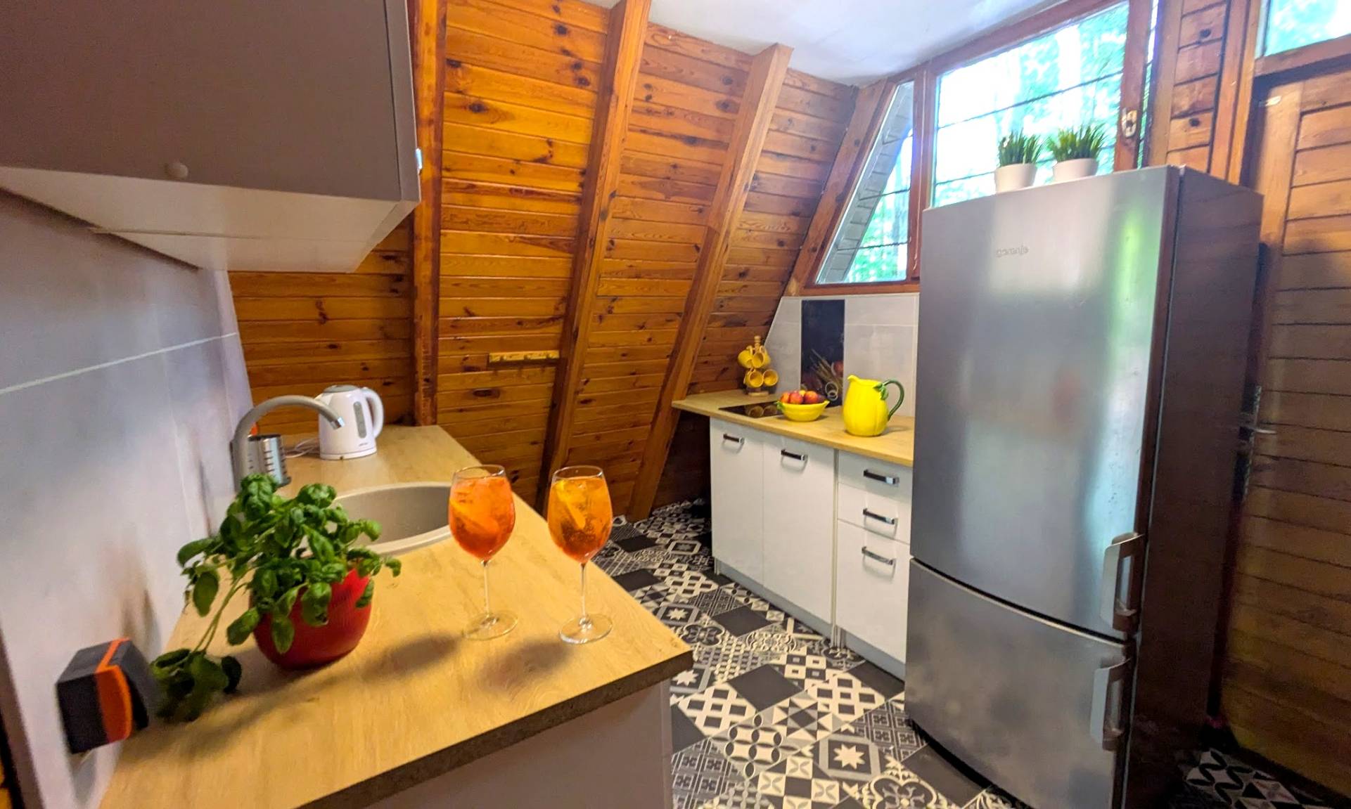 Domek typu Tramp nr 1. Położony jest ok. 250m od jeziora w spokojnej części Ośrodka Skorzęcińskiego (do najbliższego sklepu ok. 80m). Domek 6-8 osobowy składa się z trzech pokoi, kuchni, łazienki, zadaszonego tarasu. Na parterze znajduje się duży pokój z dwoma dwuosobowymi kanapami, łazienka i kuchnia. Na piętrze są dwa pokoiki z dwoma łóżkami jednoosobowymi w każdym z nich. -wyposażenie łazienki to umywalka, wc-kompackt, kabina prysznicowa -wyposażenie kuchni to zlewozmywak, szafki kuchenne, kpl. garnków, sztućców, naczyń, kuchenka dwupalnikowa, lodówka, czajnik bezprzewodowy, zaparzacz do kawy -w wyposażeniu domku są także meble ogrodowe na tarasie oraz grill. Cena obejmuje pościele, wszystkie media, dwa miejsca parkingowe. Domki rokrocznie przechodzą modernizację i niezbędne remonty. W domku nie może przebywać więcej niż zadeklarowana ilość osób. W przypadku pobytu dłuższego niż trzy tygodnie lub pobytu w pierwszym lub ostatnim tygodniu wakacji istnieje możliwość negocjacji cen. Rezerwacja zostaje przyjęta i potwierdzona poprzez e-mail lub sms po otrzymaniu wpłaty w wysokości ok. 30% wartości całego pobytu. Opłaty dodatkowe: opłata klimatyczna(wysokośc ustala Gmina Witkowo),wjazd na teren ośrodka(wysokośc ustala Gmina Witkowo)